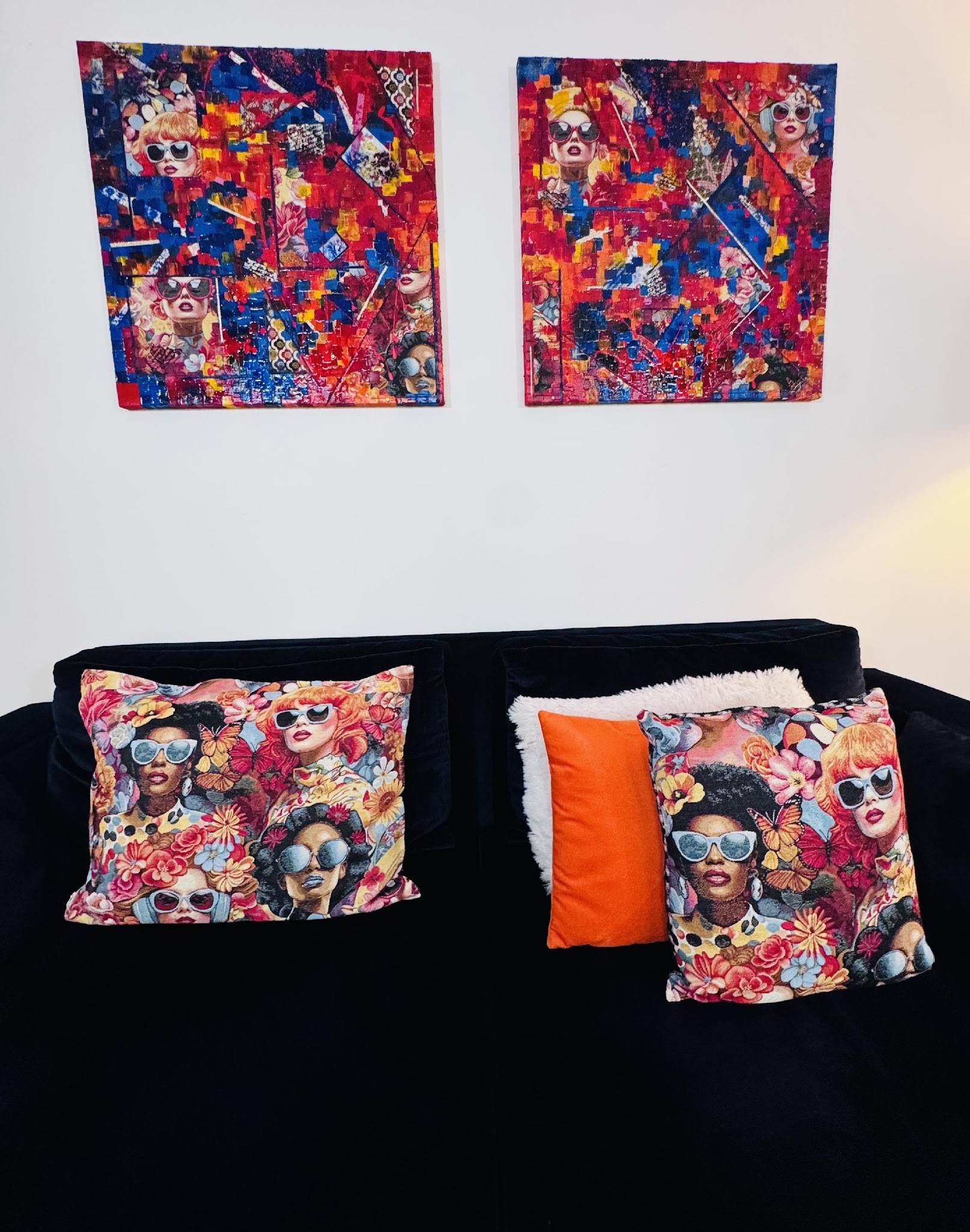 Ensemble de 3 toiles (50x60 cm + deux de 39x39 cm)