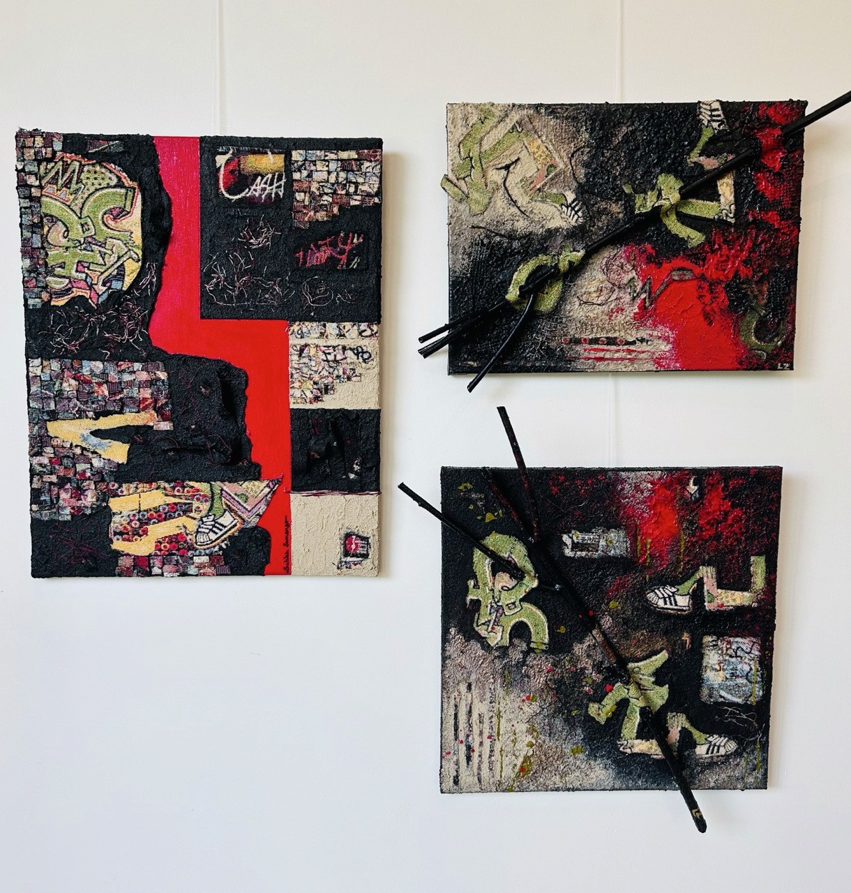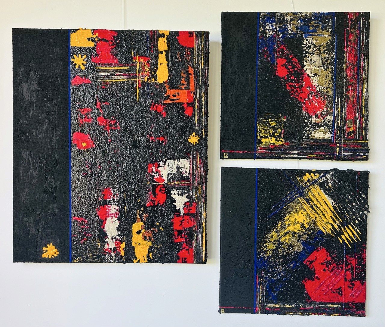 Ensemble de 3 toiles (40x50 cm, 40x40 cm et 40x29 cm)
