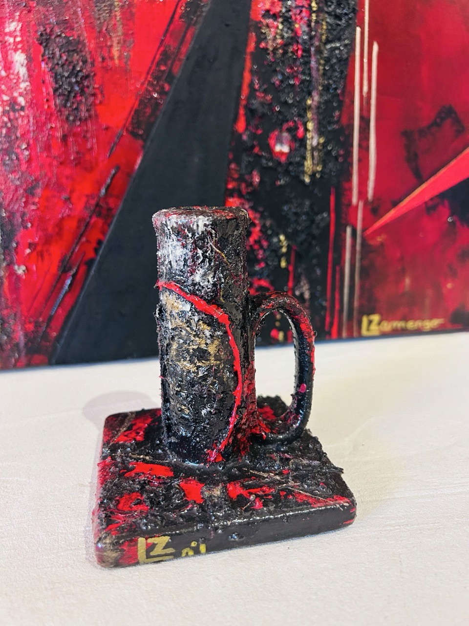 Axis est une pièce qui condense l'intensité du chaos intérieur dans une forme épurée. Recouvert d'époxy brillant, il capte la lumière comme un miroir trouble, révélant en surface ce qui bouillonne en profondeur.