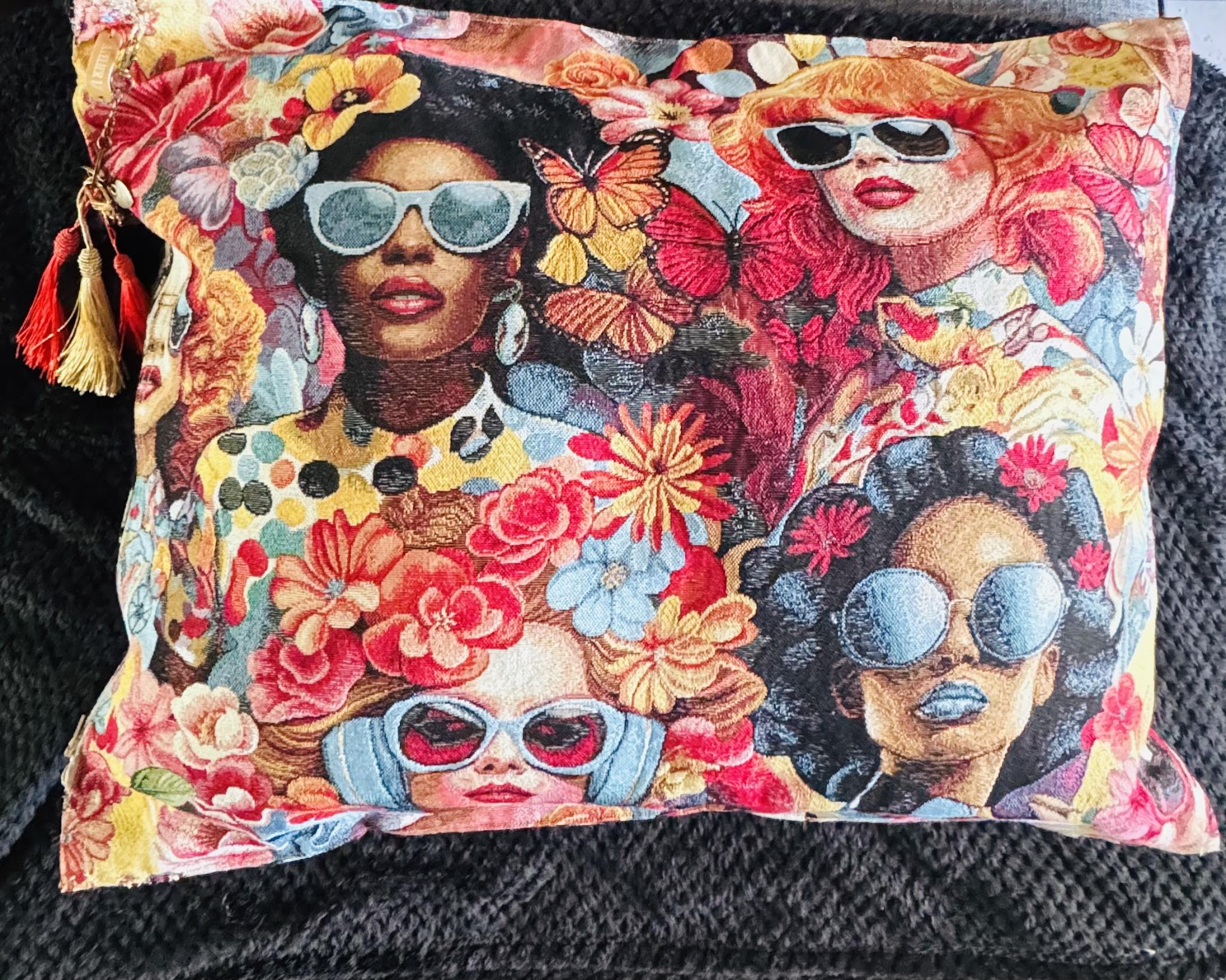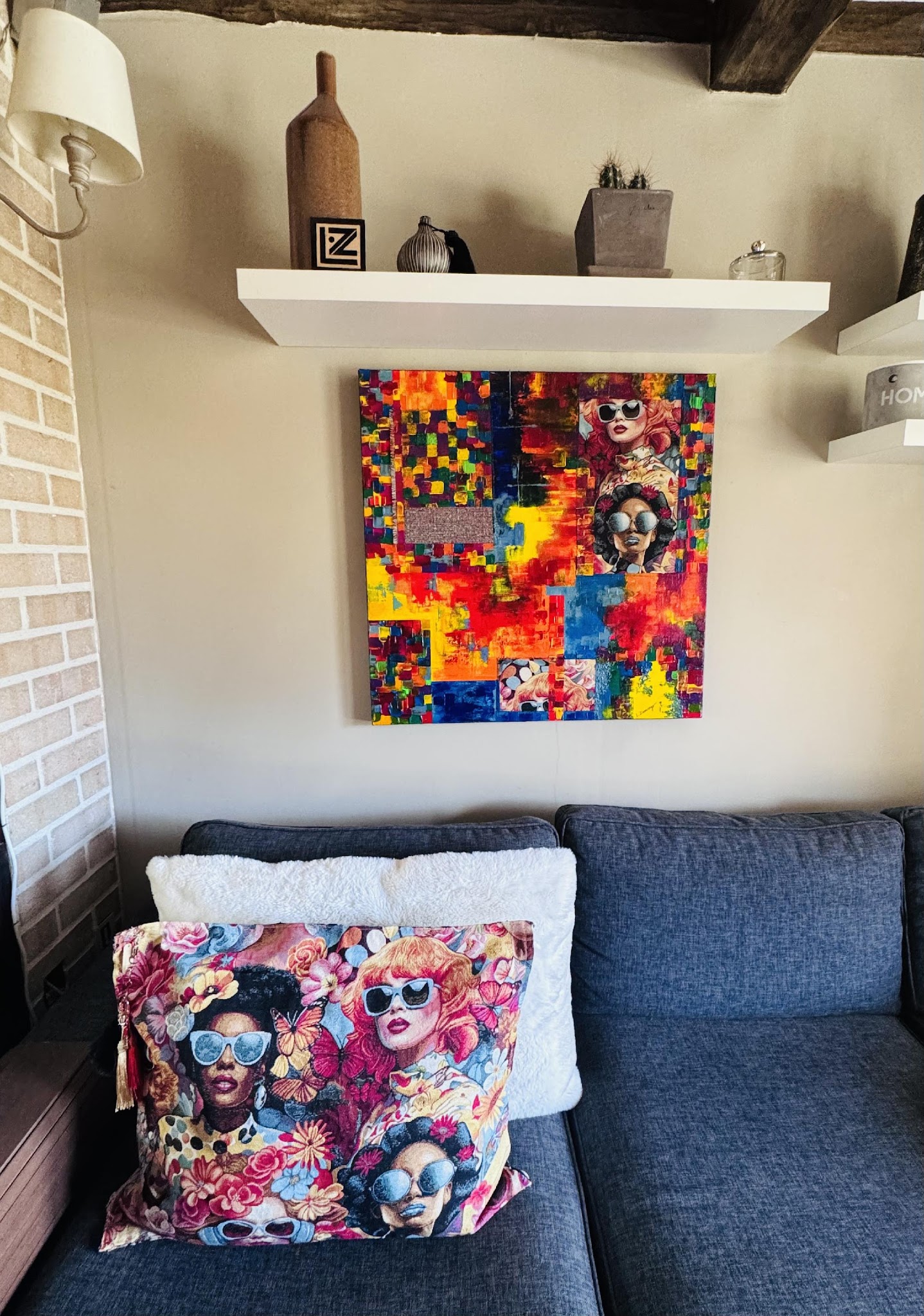 Ce coussin de la collection « Girl Power » a été conçu pour s'intégrer harmonieusement dans la pièce, ajoutant un élément subtil en écho à la toile. Il est réalisé dans un tissu Jacquard identique à celui utilisé sur l'œuvre de la même collection.