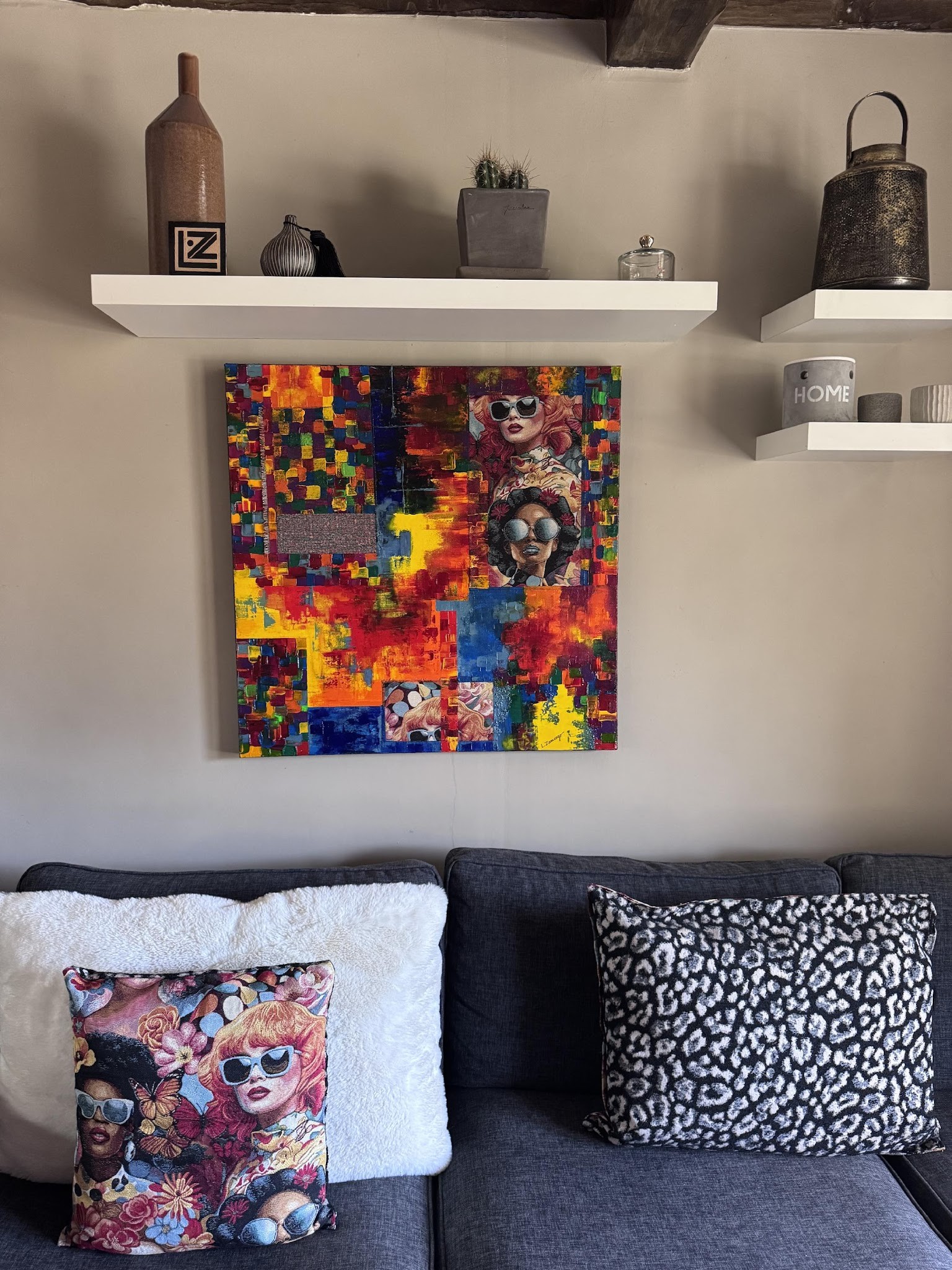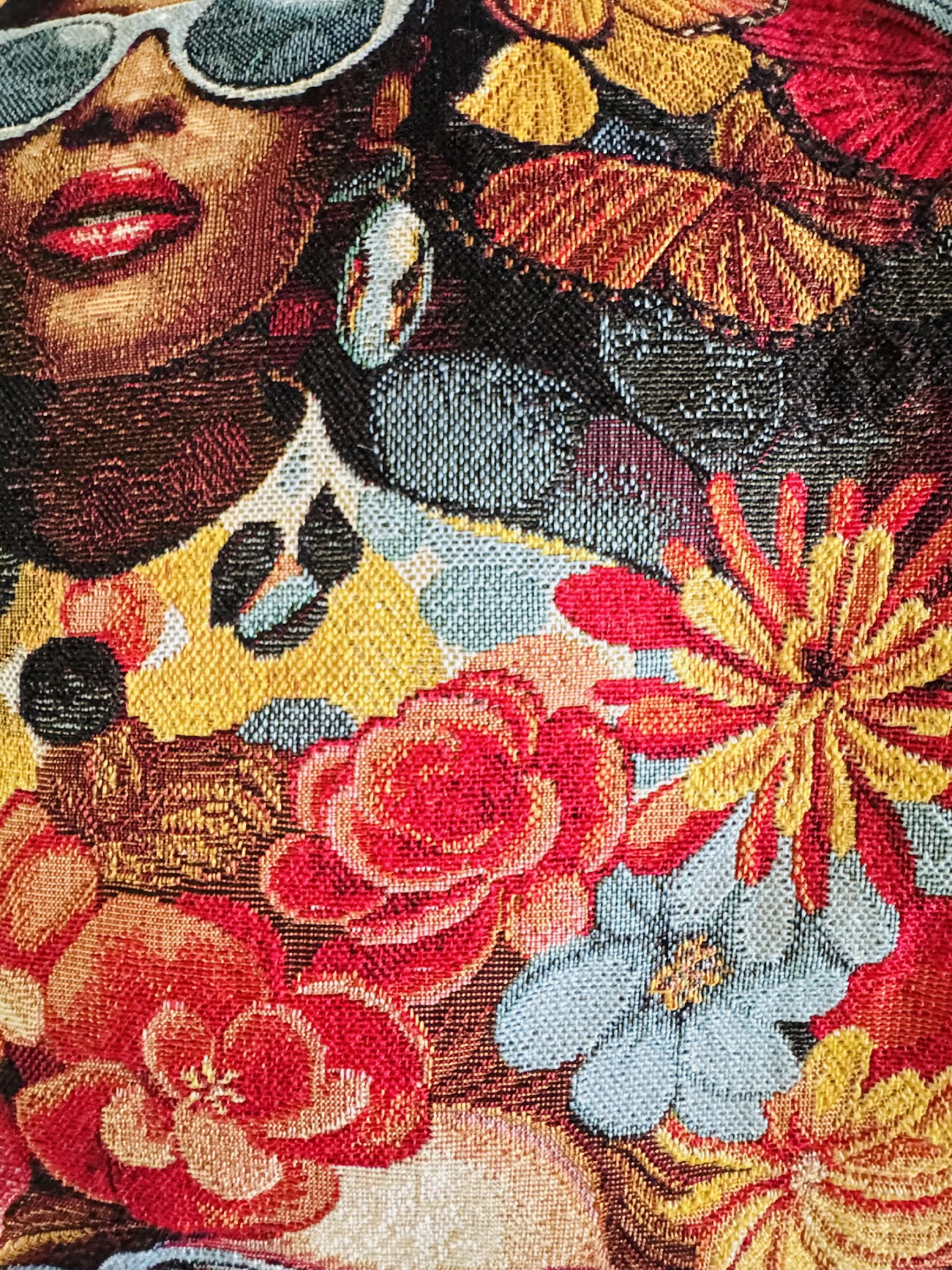 Ce coussin de la collection « Girl Power » a été conçu pour s'intégrer harmonieusement dans la pièce, ajoutant un élément subtil en écho à la toile. Il est réalisé dans un tissu Jacquard identique à celui utilisé sur l'œuvre de la même collection.