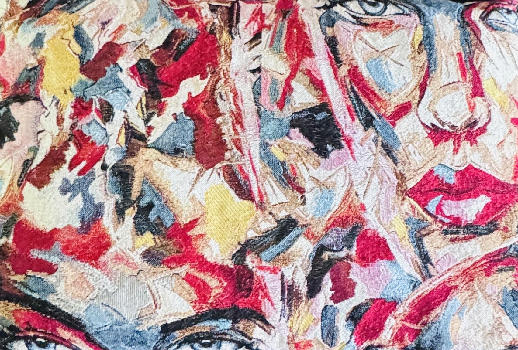 Ce coussin de la série « Reflet de l'âme » a été conçu comme une extension unique de la peinture. Il est réalisé avec le tissu Jacquard identique à celui utilisé sur la toile, assurant une continuité parfaite entre l'œuvre et l'objet.