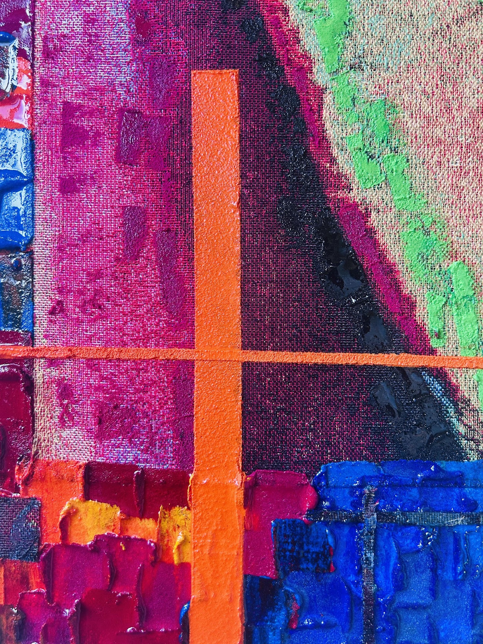 Technique mixte sur toile (Acrylique, sable, tissu)