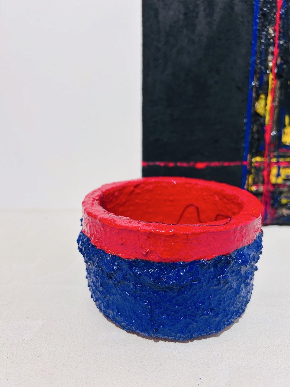 Peint à la main, puis protégé par une couche de résine brillante, Minos est une pièce à la fois utilitaire et symbolique. Son bleu profond invite au calme, à la contemplation, à une forme de lenteur intérieure.