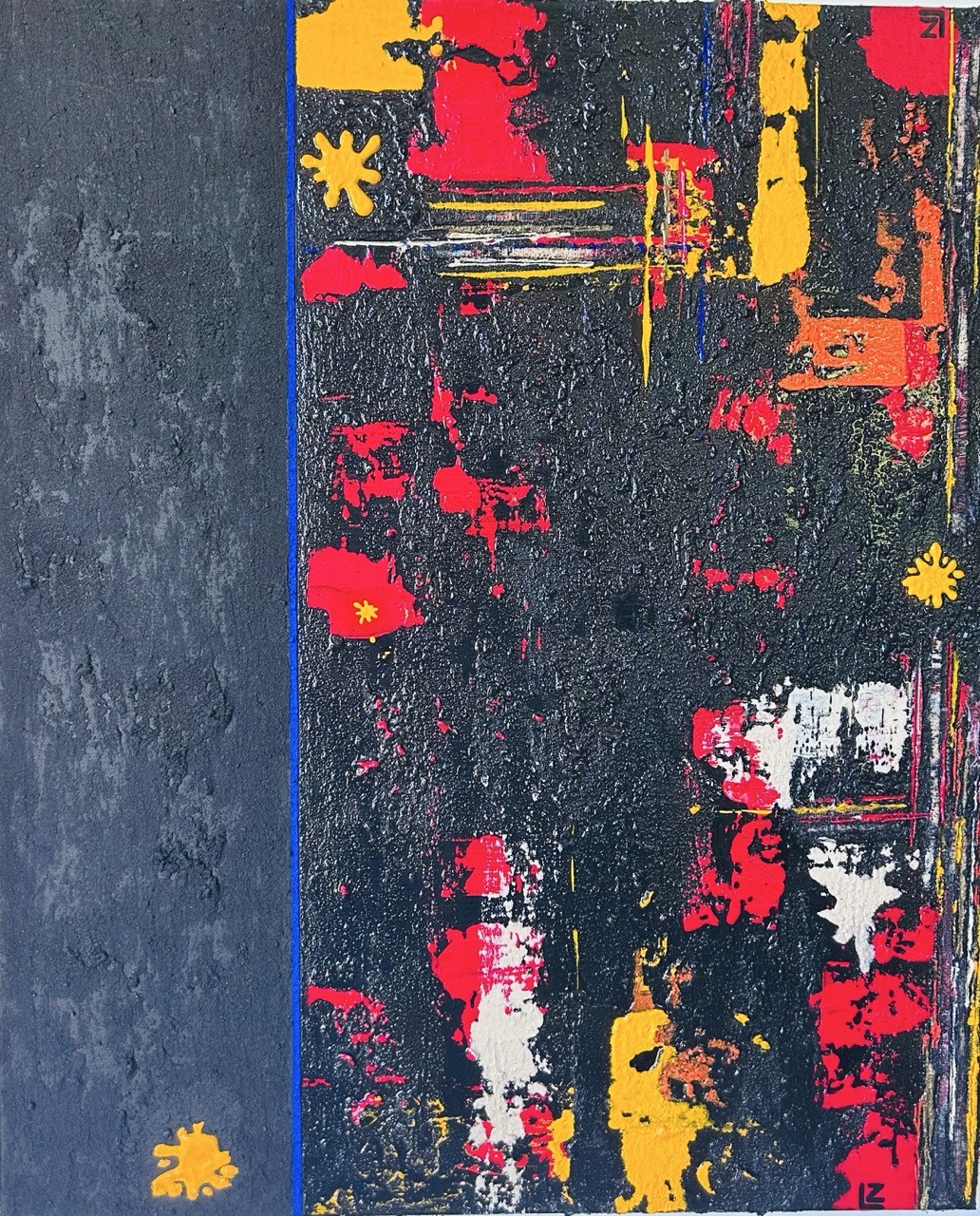 Ce triptyque est une cartographie de l'âme, où chaque ligne est une trace, chaque texture une mémoire. Et cette ligne bleue, presque fragile, est aussi celle de la persévérance : un signe que, malgré tout, le chemin existe.