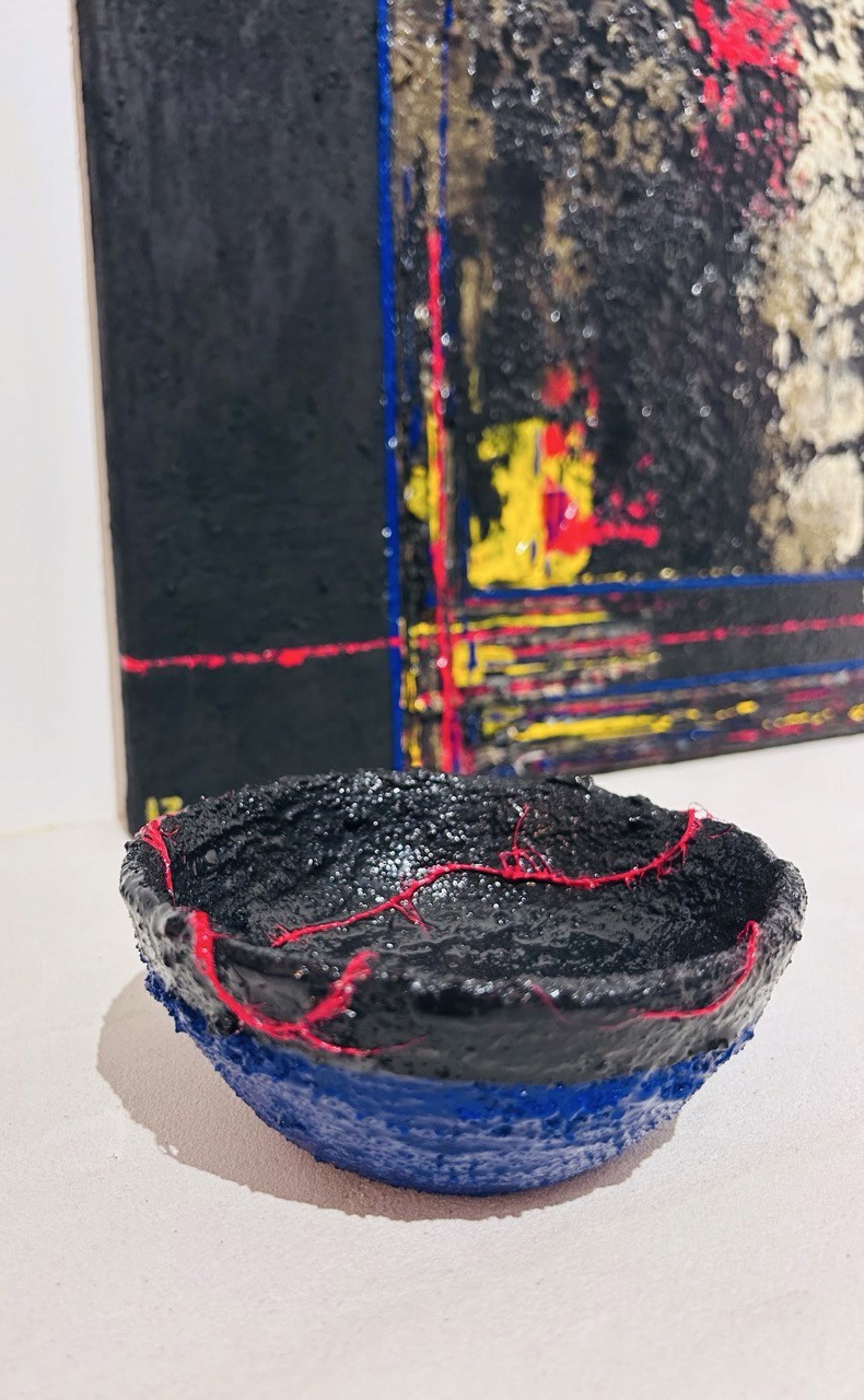 Peint à la main et protégé par une fine couche de résine, il est conçu comme un objet de rituel quotidien : pour déposer ce qui pèse ou ce qui suit, pour marquer un seuil, pour retrouver un point de départ dans le chaos.