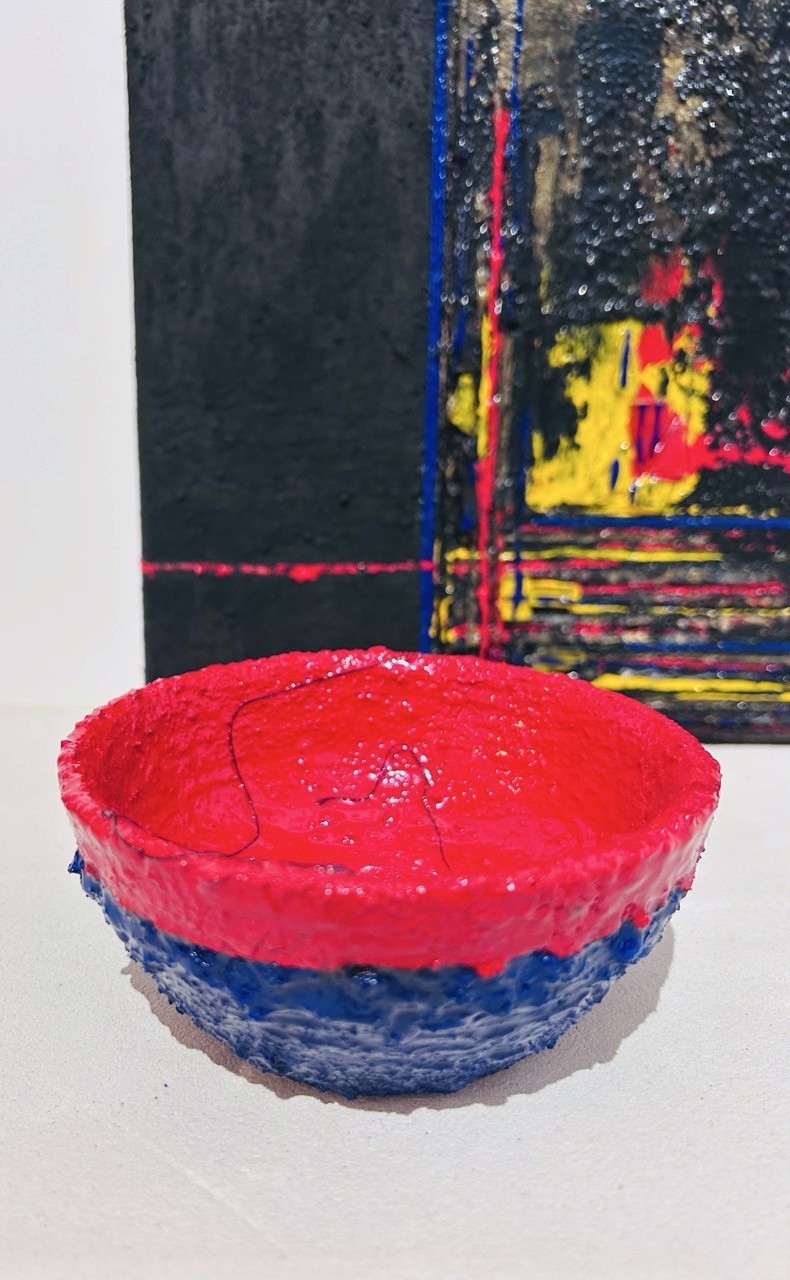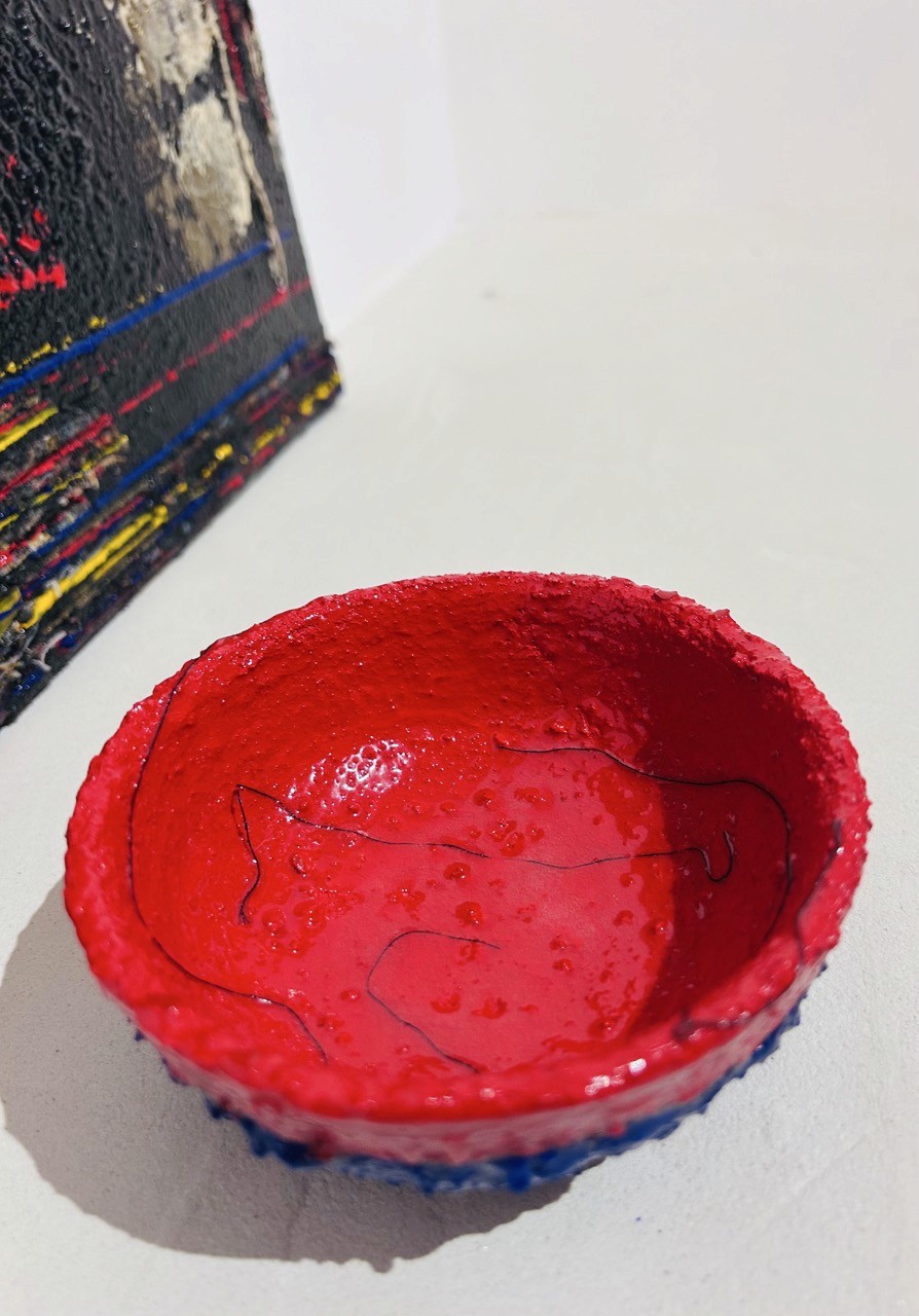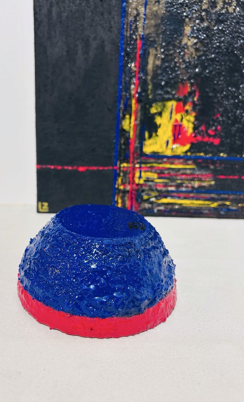 Peint à la main, protégé par une fine couche de résine, il est conçu comme un objet de rituel quotidien : pour déposer ce qui pèse ou ce qui suit, pour marquer un seuil, pour retrouver un point de départ dans le chaos.