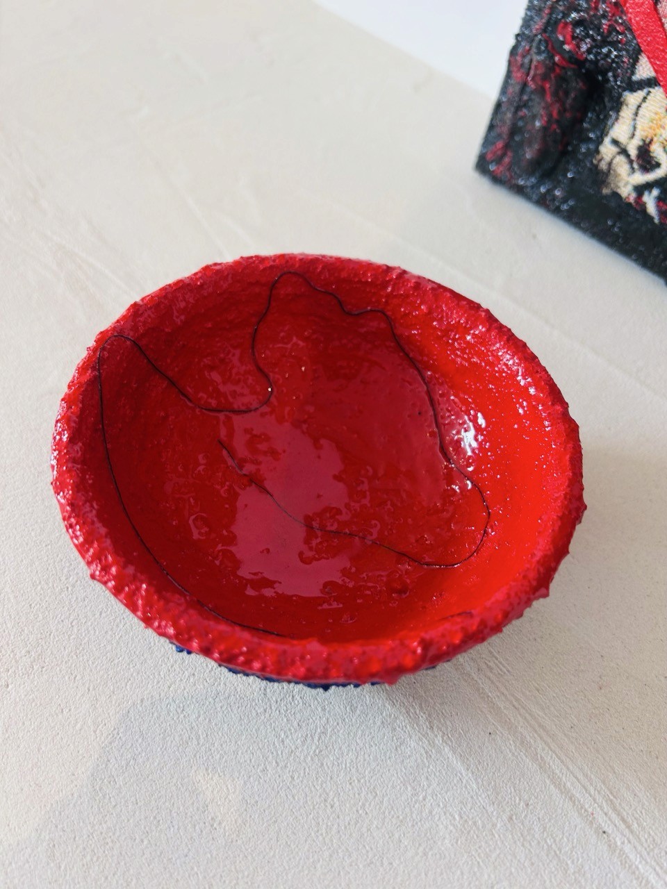 Peint à la main et protégé par une fine couche de résine, il est conçu comme un objet de rituel quotidien : pour déposer ce qui pèse ou ce qui suit, pour marquer un seuil, pour retrouver un point de départ dans le chaos.